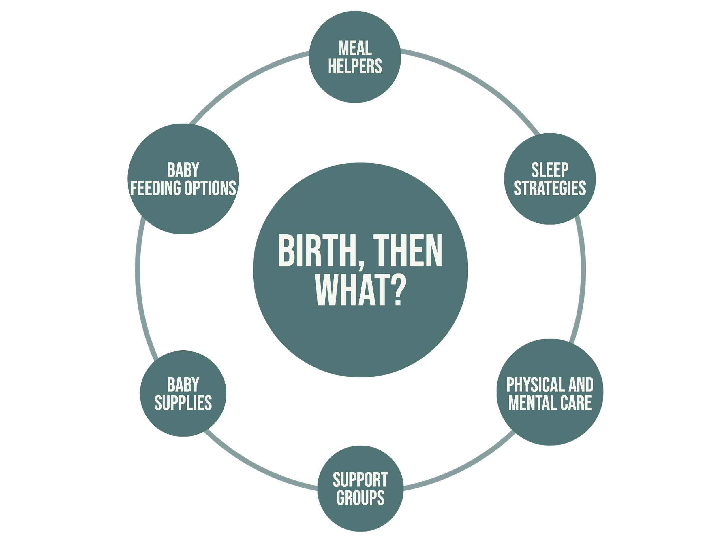 Client care: breast/chestfeeding support, pumping support, postpartum education, creating time for rest/adult conversation/body movement, mental health screening.